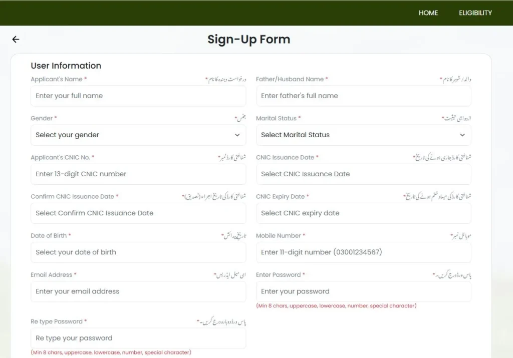 رجسٹریشن مکمل کرنے کے بعد، درخواست کا فارم بھرنا شروع کریں۔ یہاں تمام ذاتی تفصیلات درست طریقے سے بھرنا انتہائی اہم ہے۔ زمینی ریکارڈ، بینک اکاؤنٹ کی تفصیلات، اور خاندان کے افراد کی معلومات کو احتیاط سے داخل کریں۔ کوئی بھی غلط یا نامکمل معلومات آپ کی درخواست کو مسترد کر سکتی ہے۔
